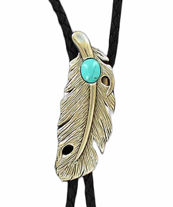 Bolo Tie (22104) - Unisex Western Feather Silver & Turquoise