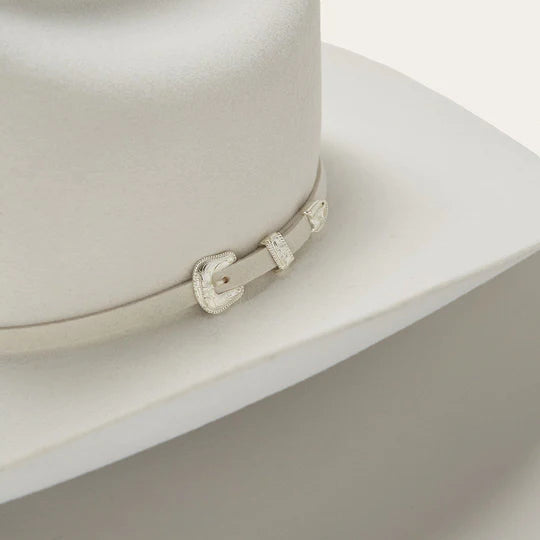 A high-quality 4X wool cowboy hat, the Deadwood features a classic cattleman’s silhouette, with a taller, 4 5/8” crown and curved 4” brim. It’s finished with elegant details like a 3-piece silver buckle at the matching hatband, and a leather interior sweatband to keep you comfortable and cool. An example of Stetson’s impeccable all-American craftsmanship, this hat is proudly made in the U.S.A.