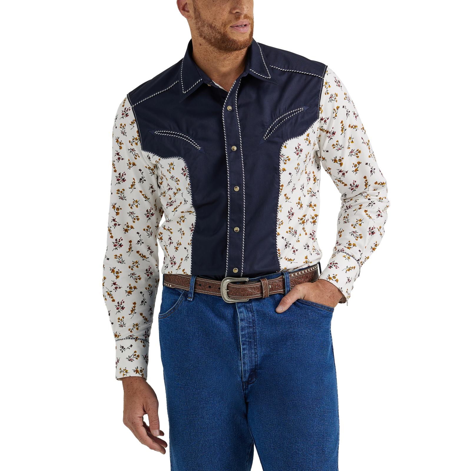 Top Men's (112345062) - Wrangler® Rodeo Ben Long Sleeve Shirt - Tan/Navy